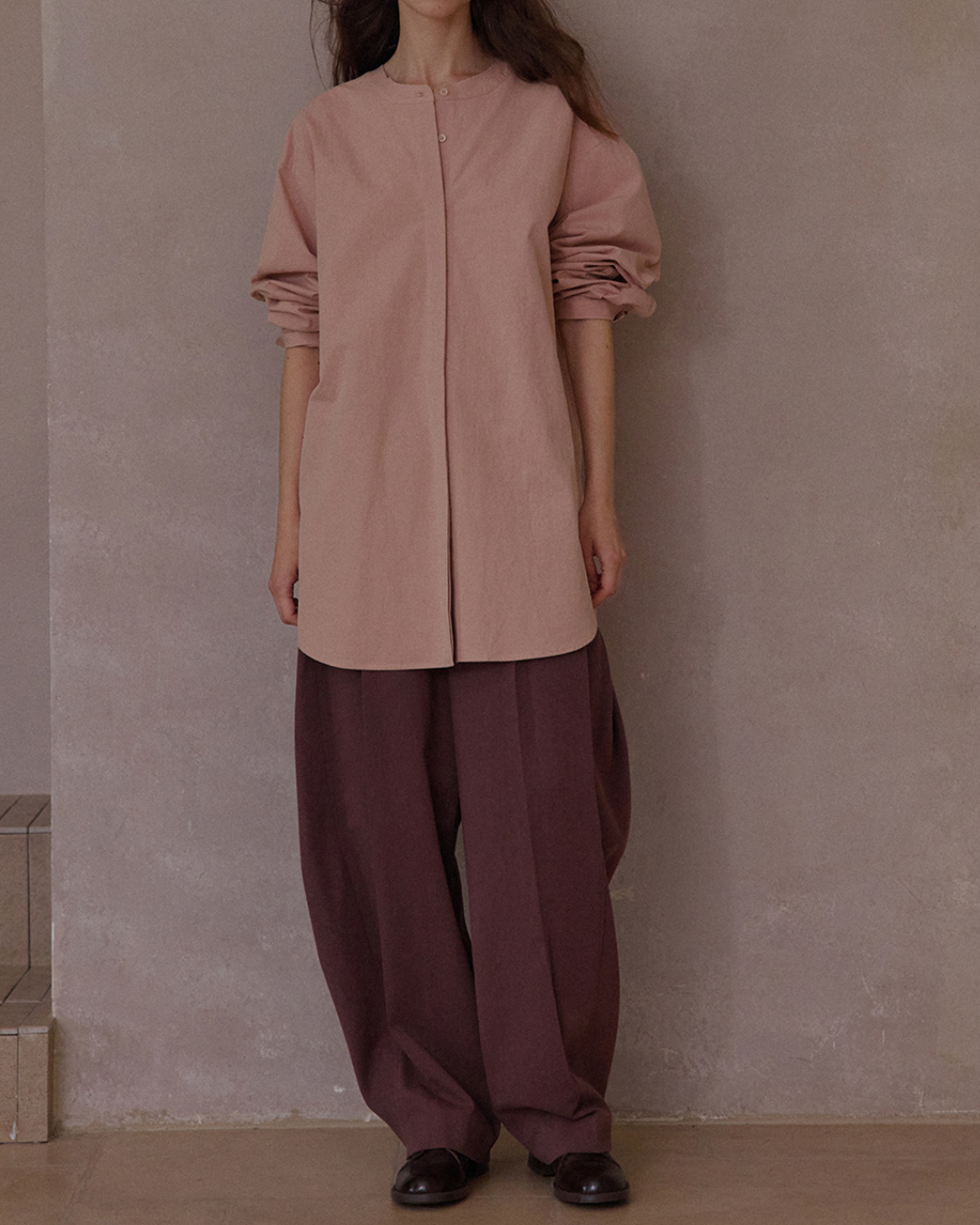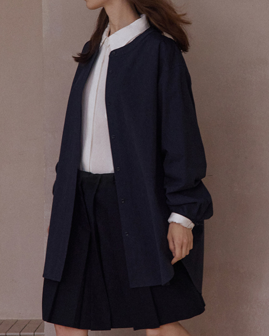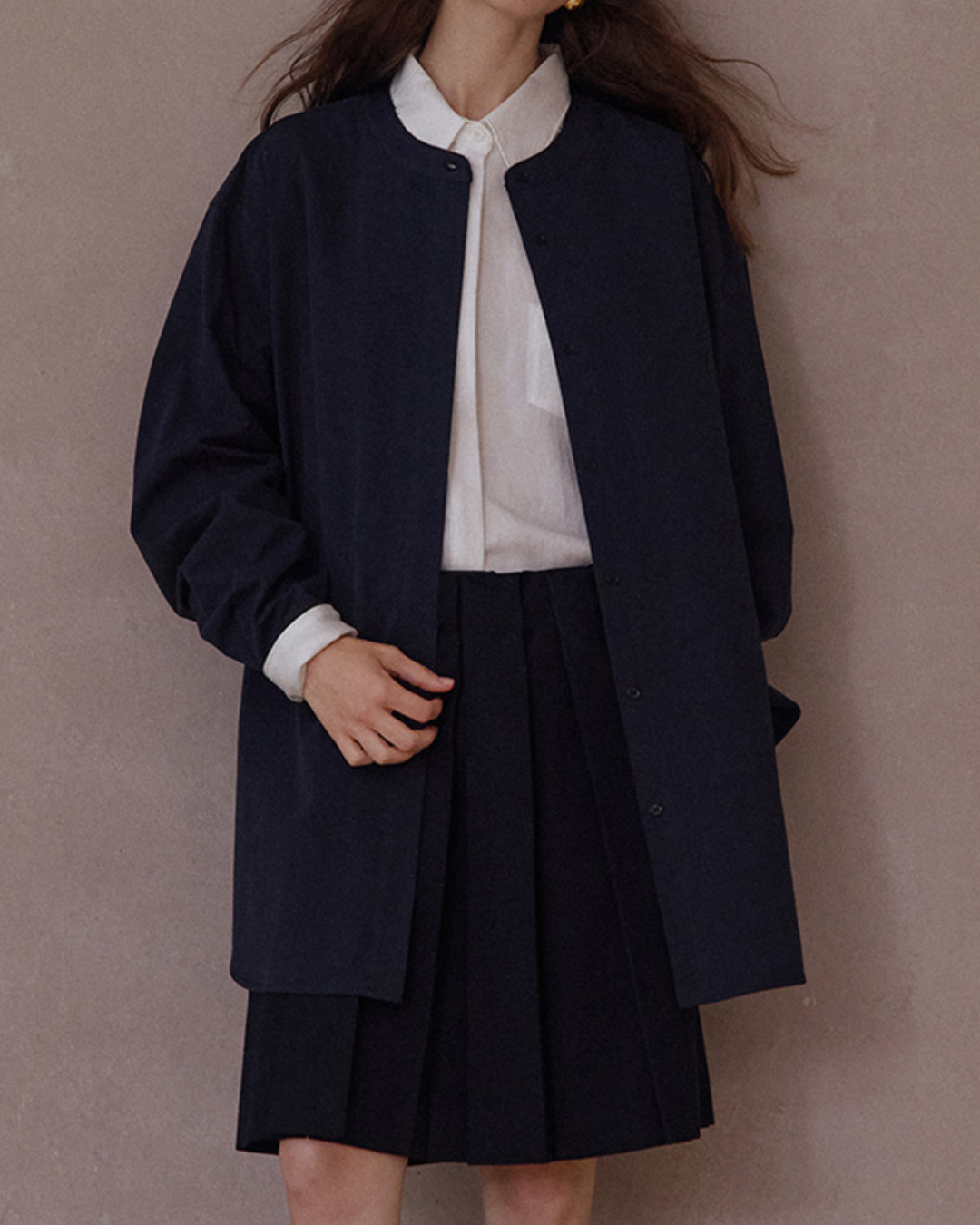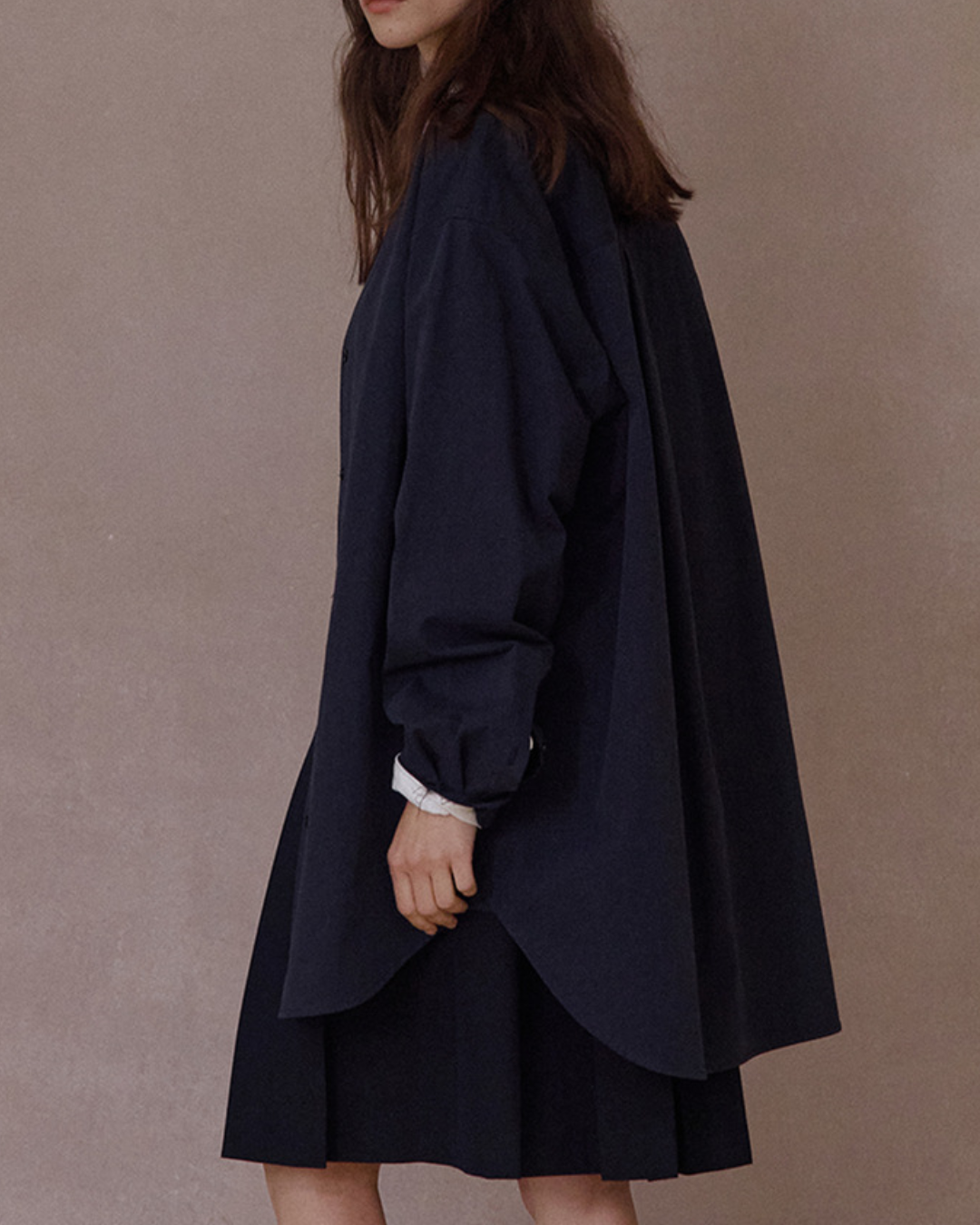 バンドカラーIラインロングシャツ 10104
