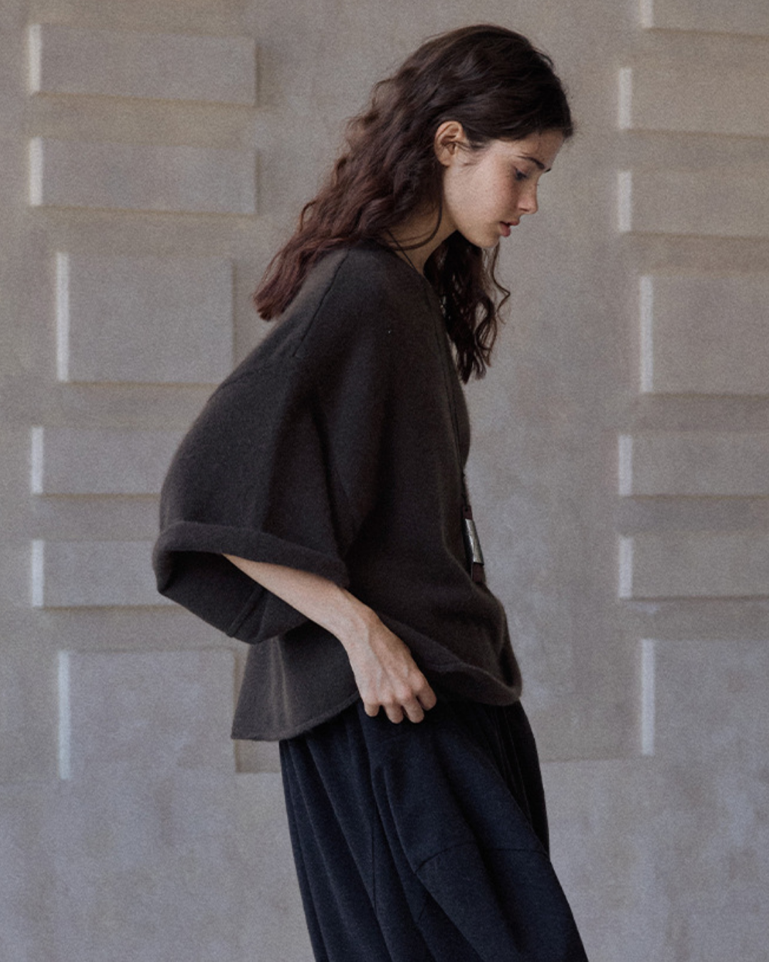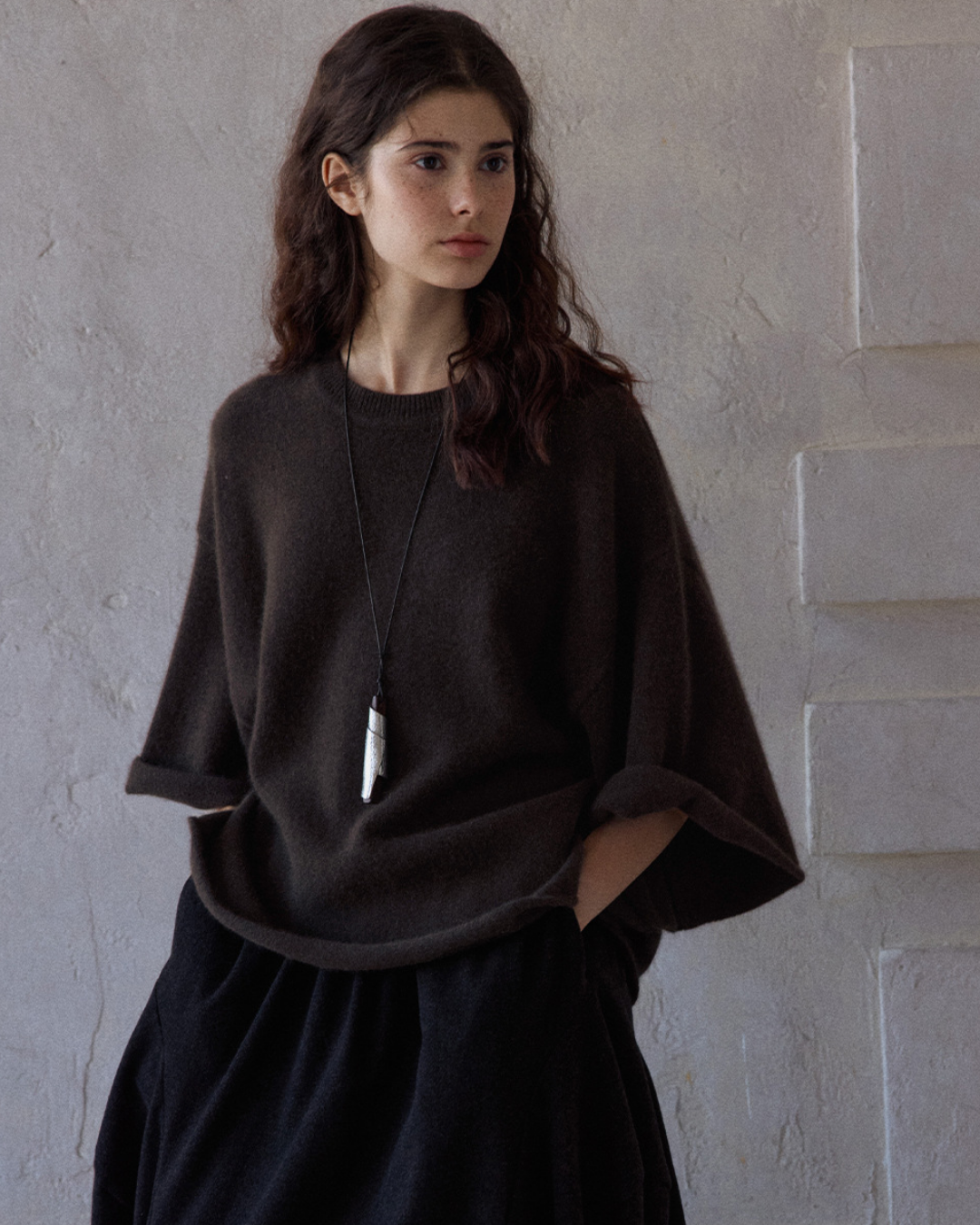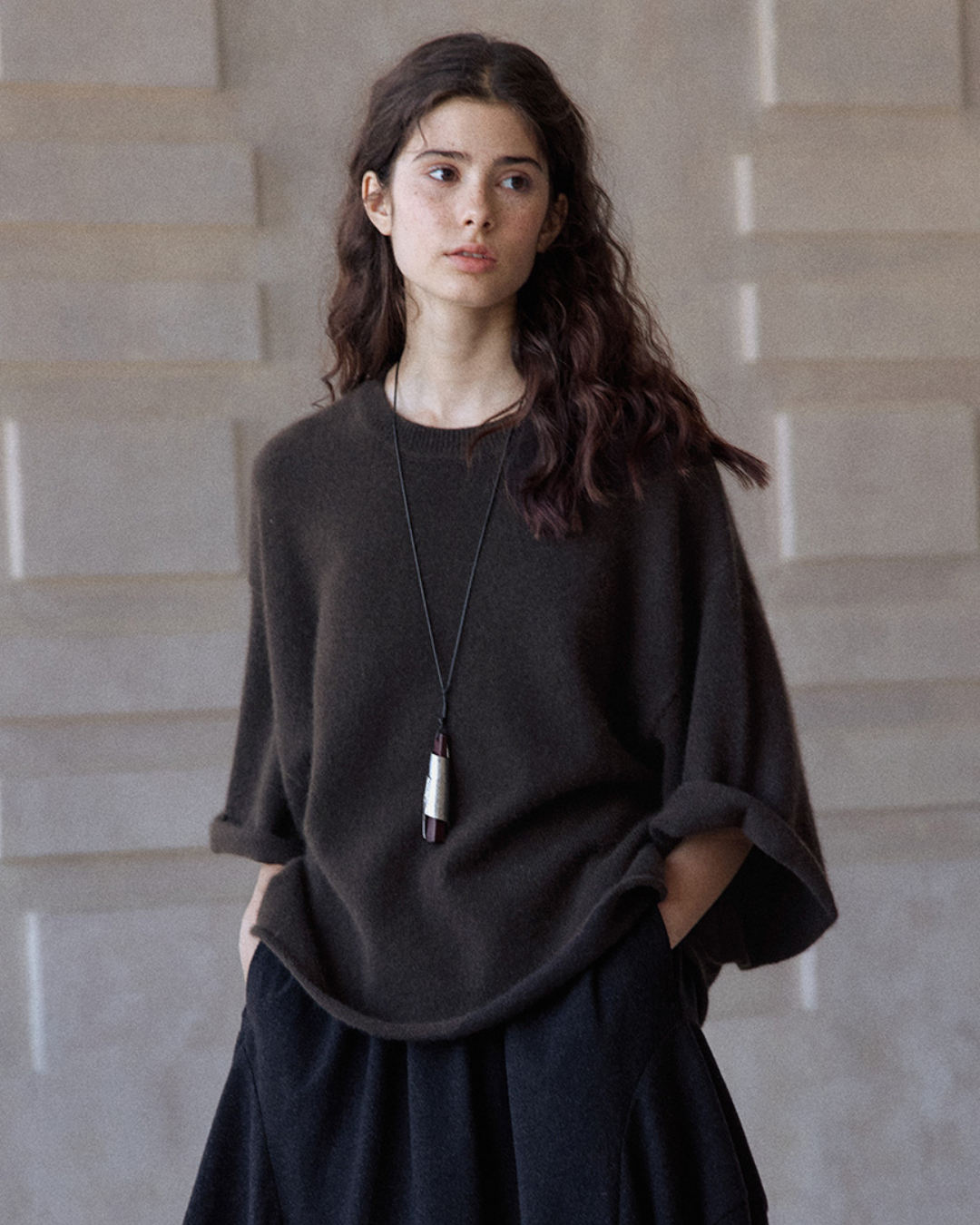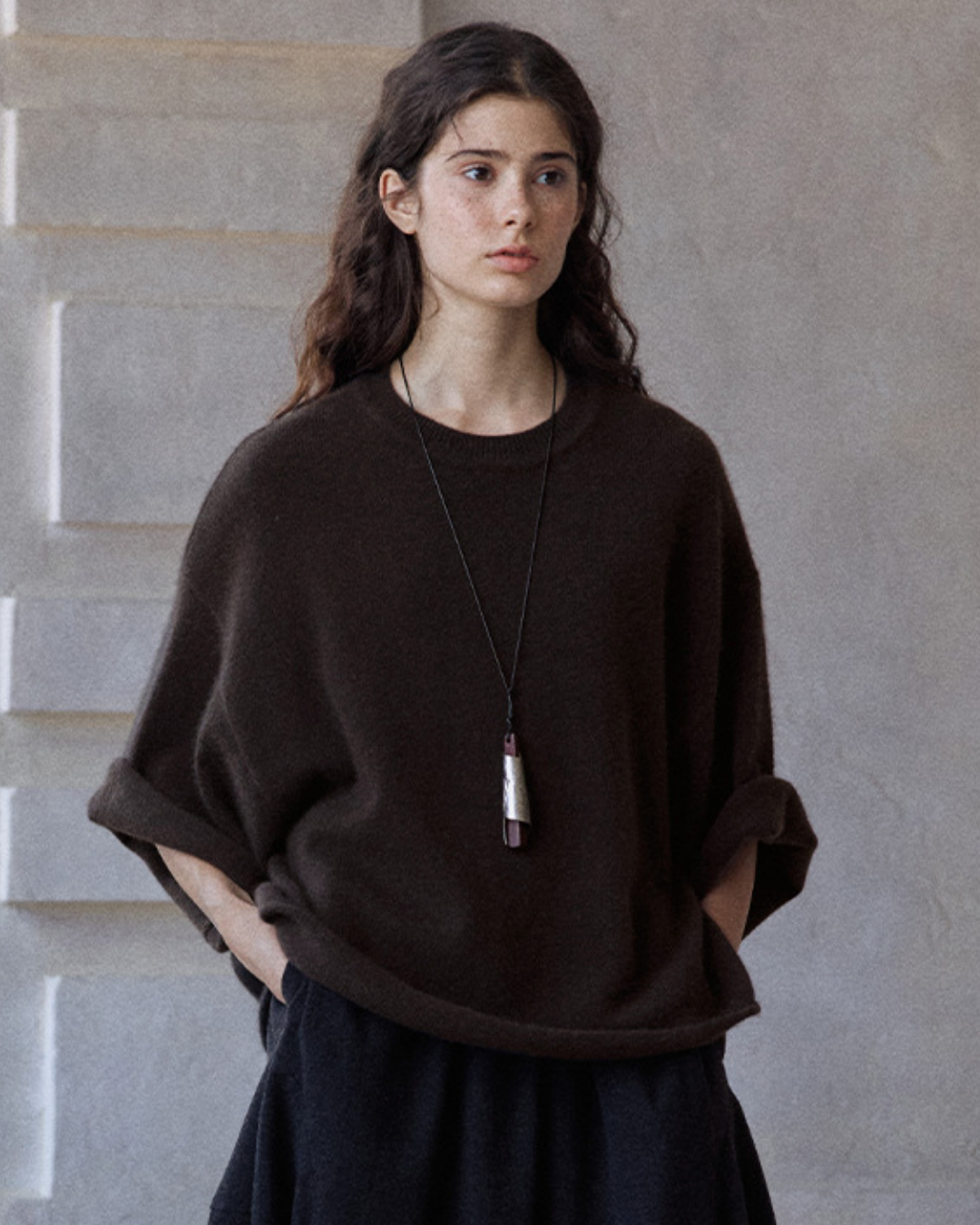 ラウンドネックミドルスリーブニットプルオーバー 10137