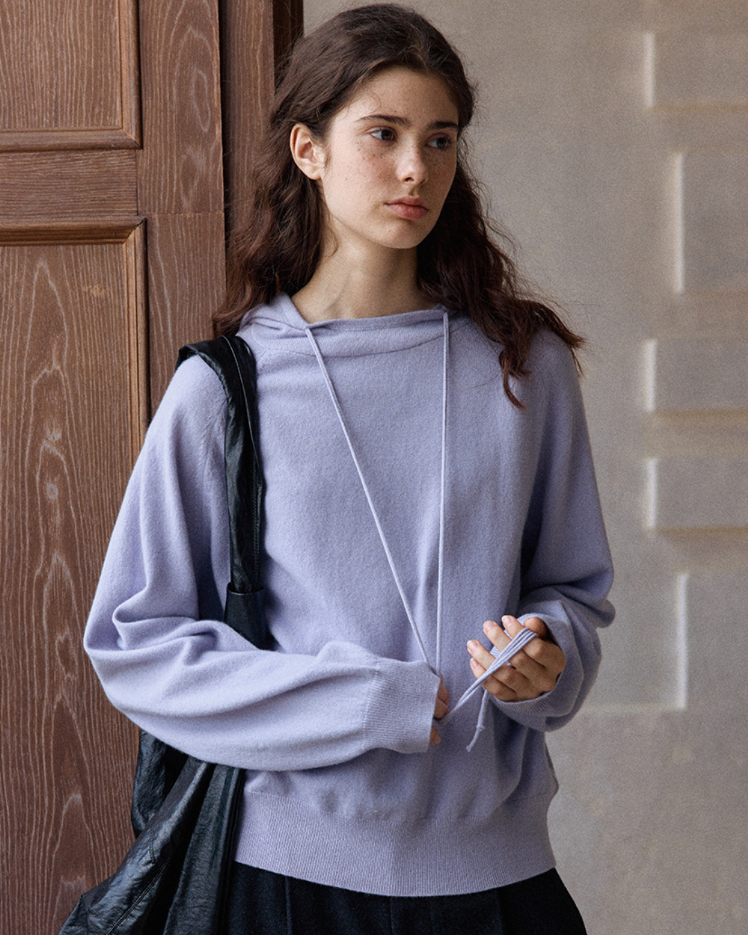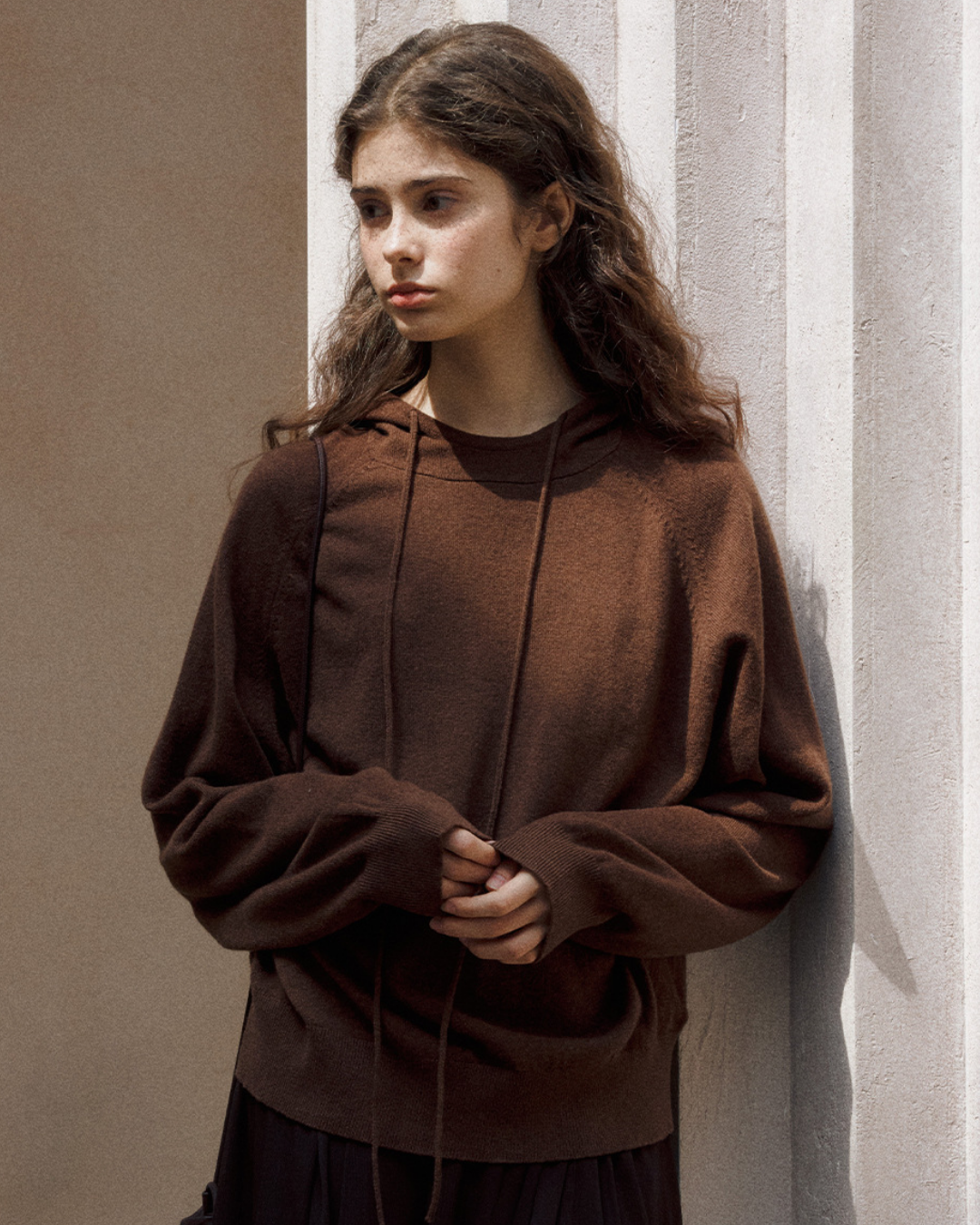 ラグランスリーブフーディーウォームトーンニットプルオーバー 10151
