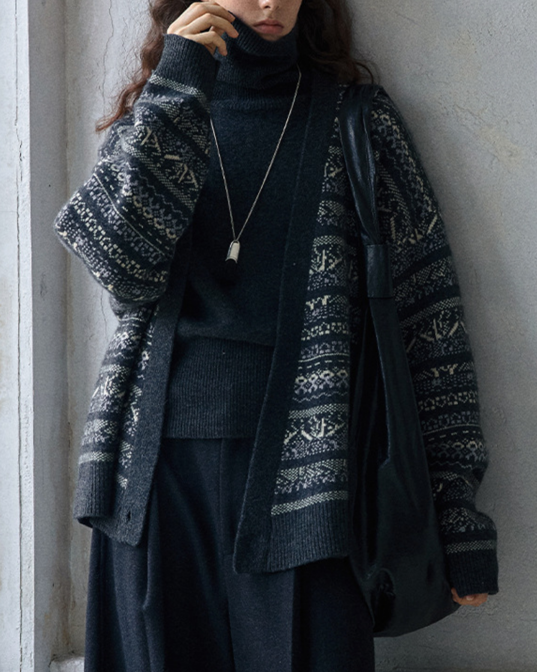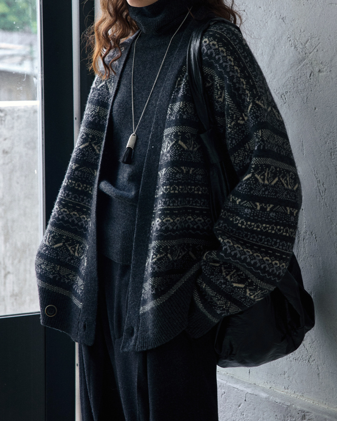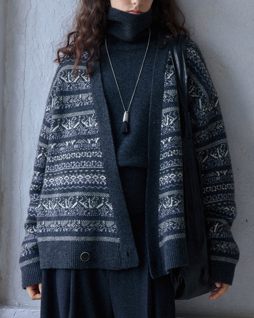 フェアアイルジャカードVネックニットカーディガン 10188
