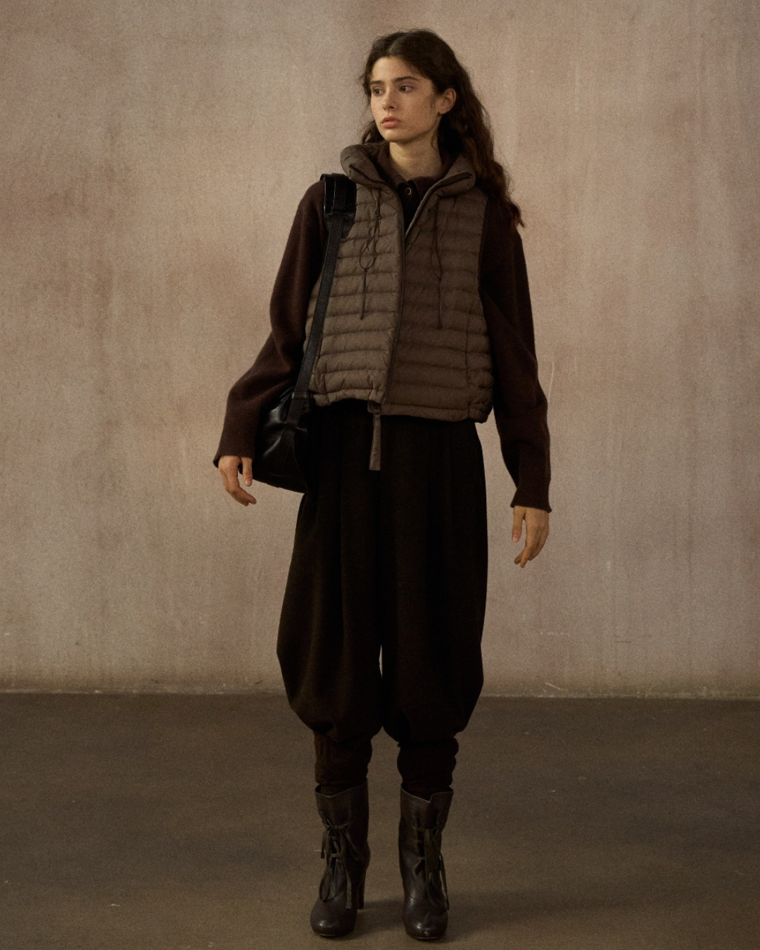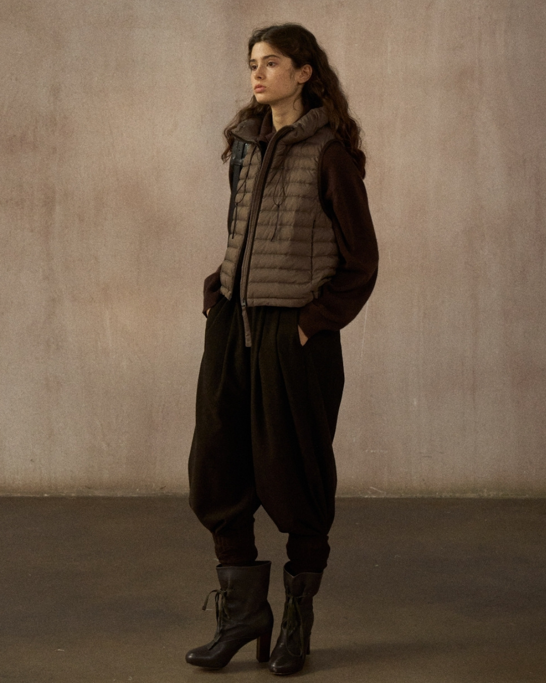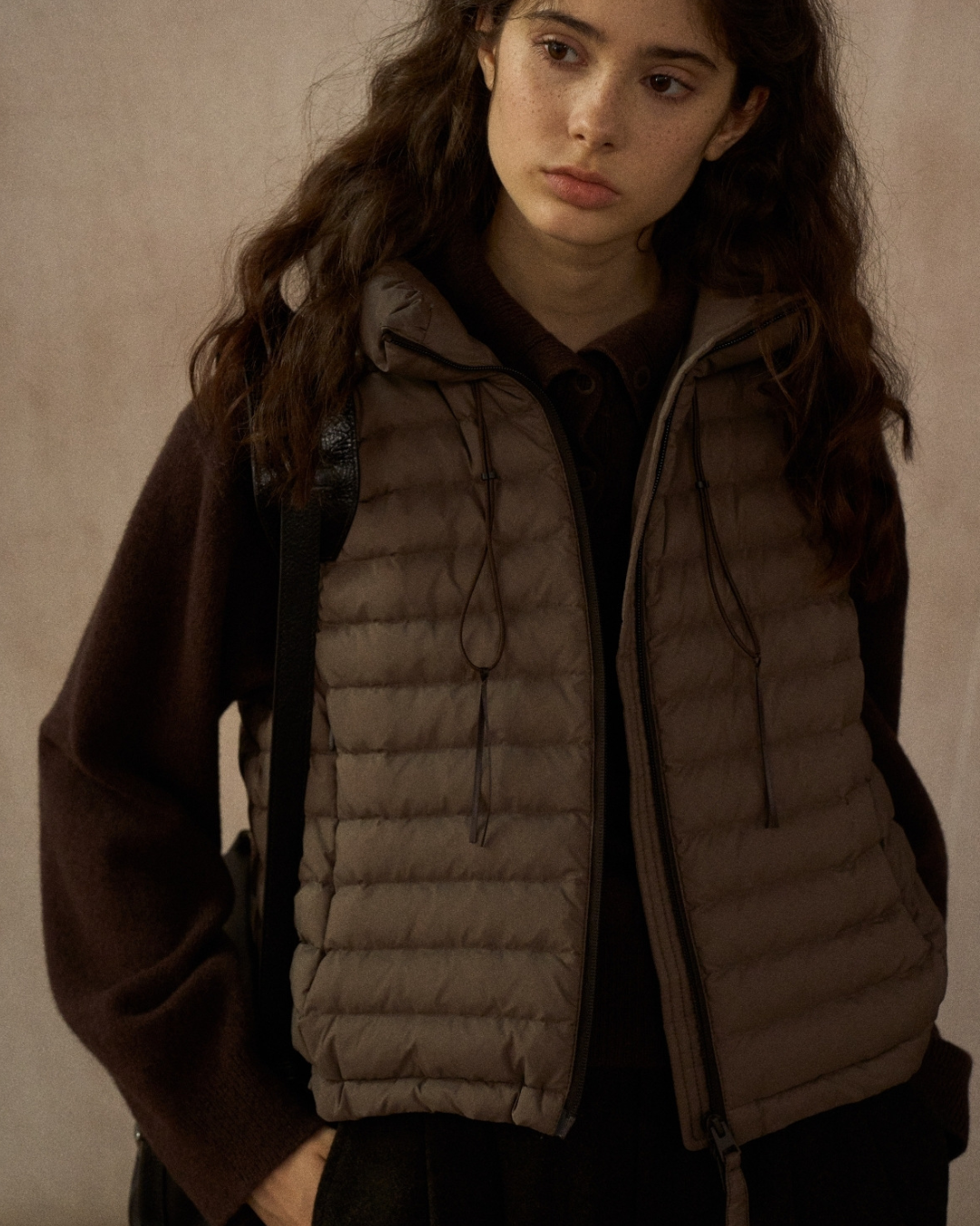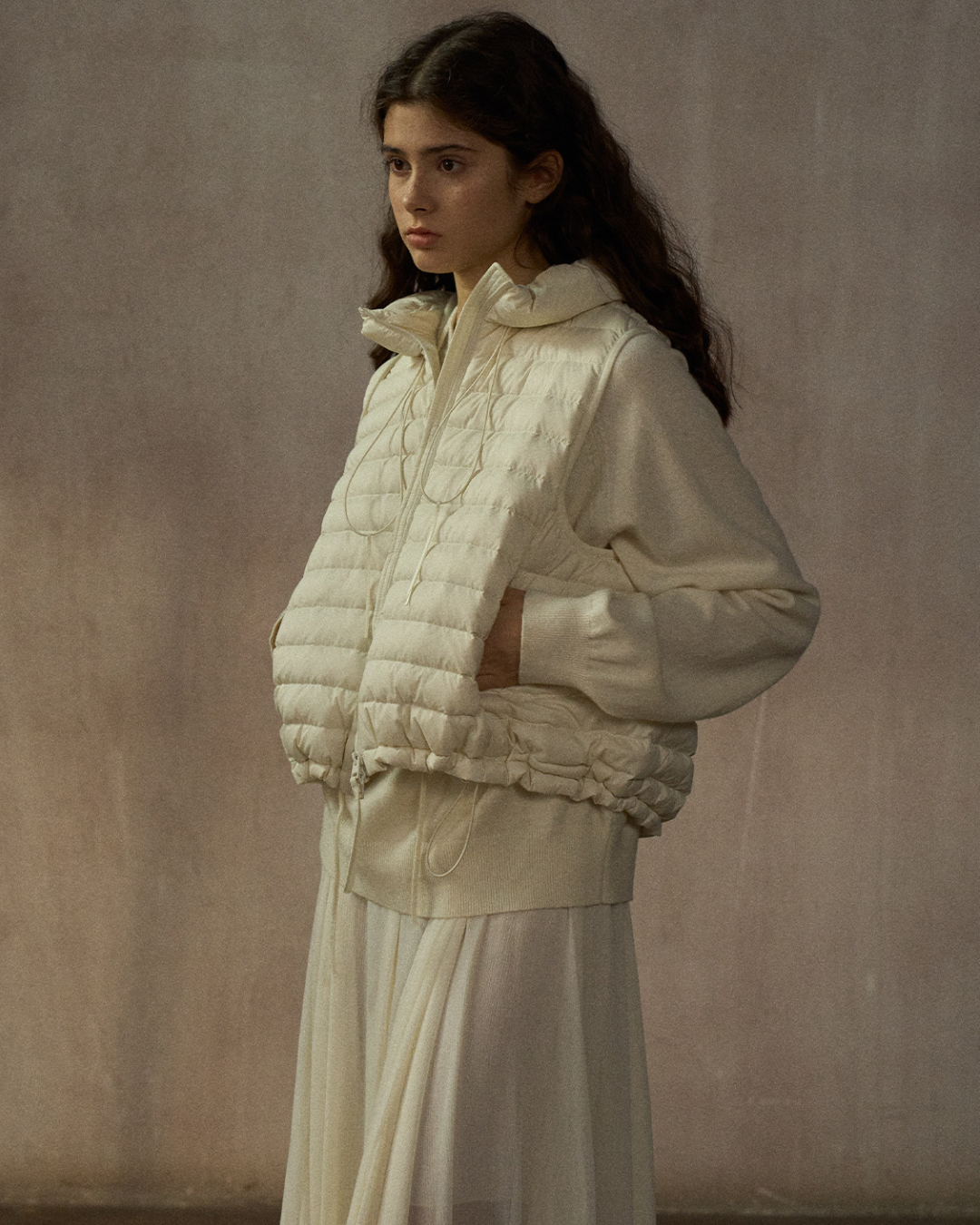 スタンドカラードローコードショートベスト 10250