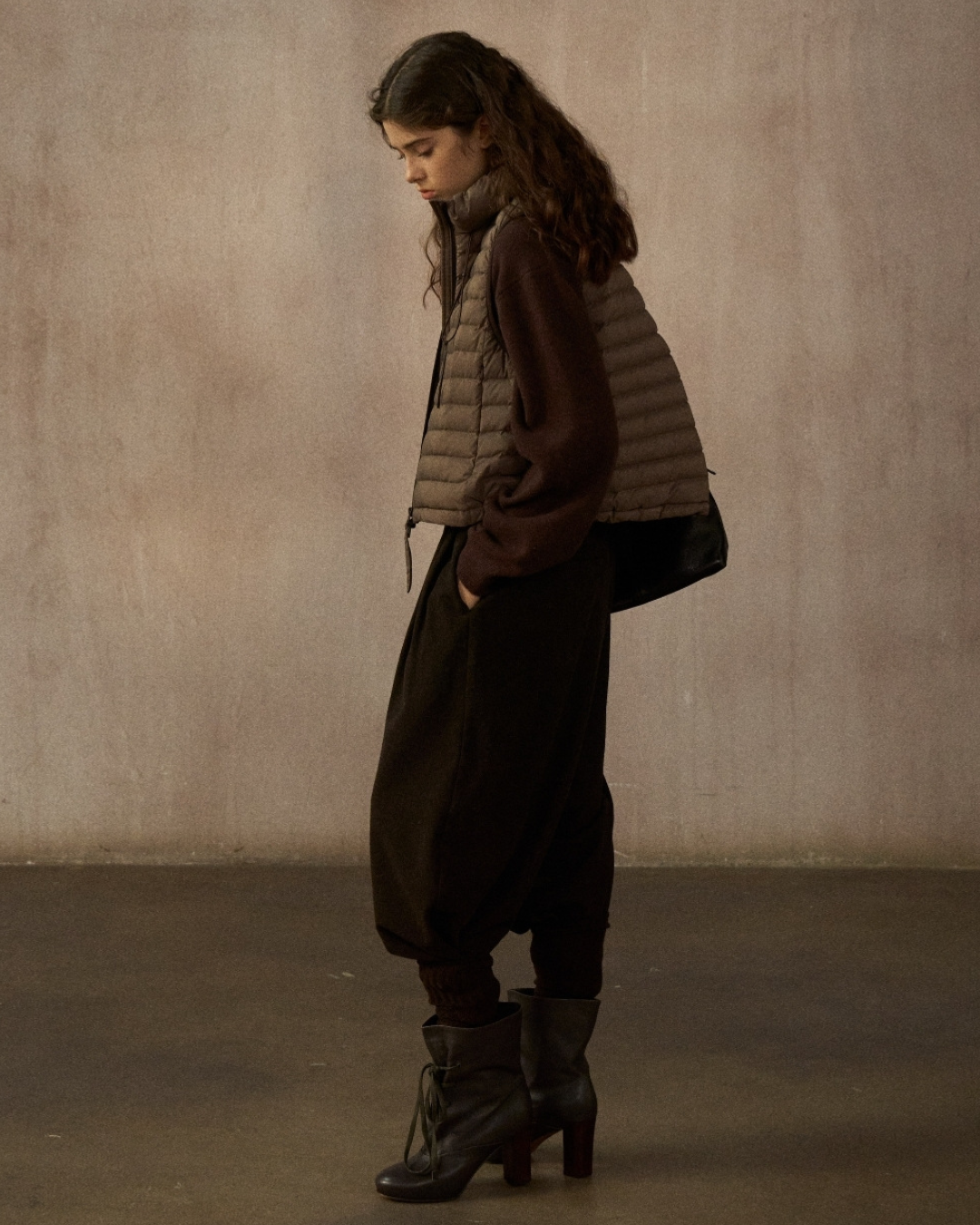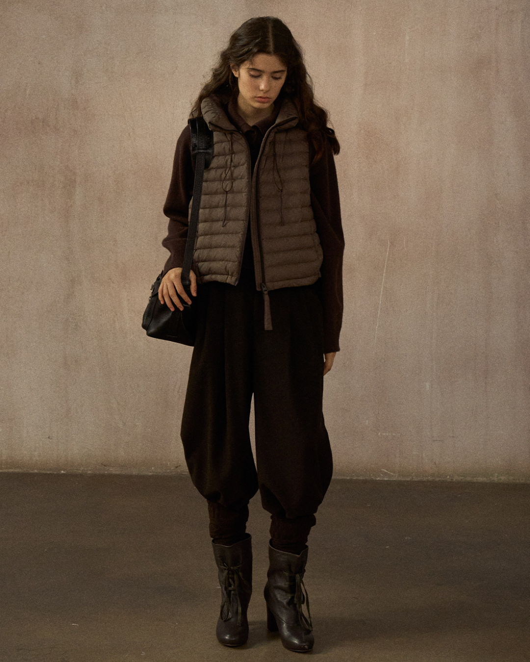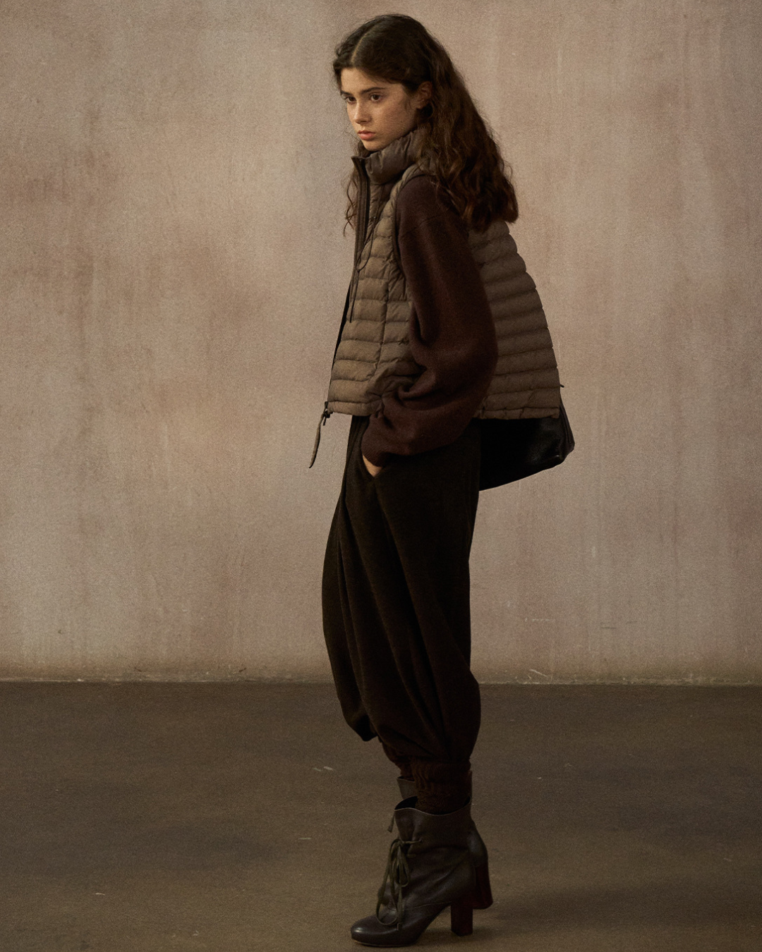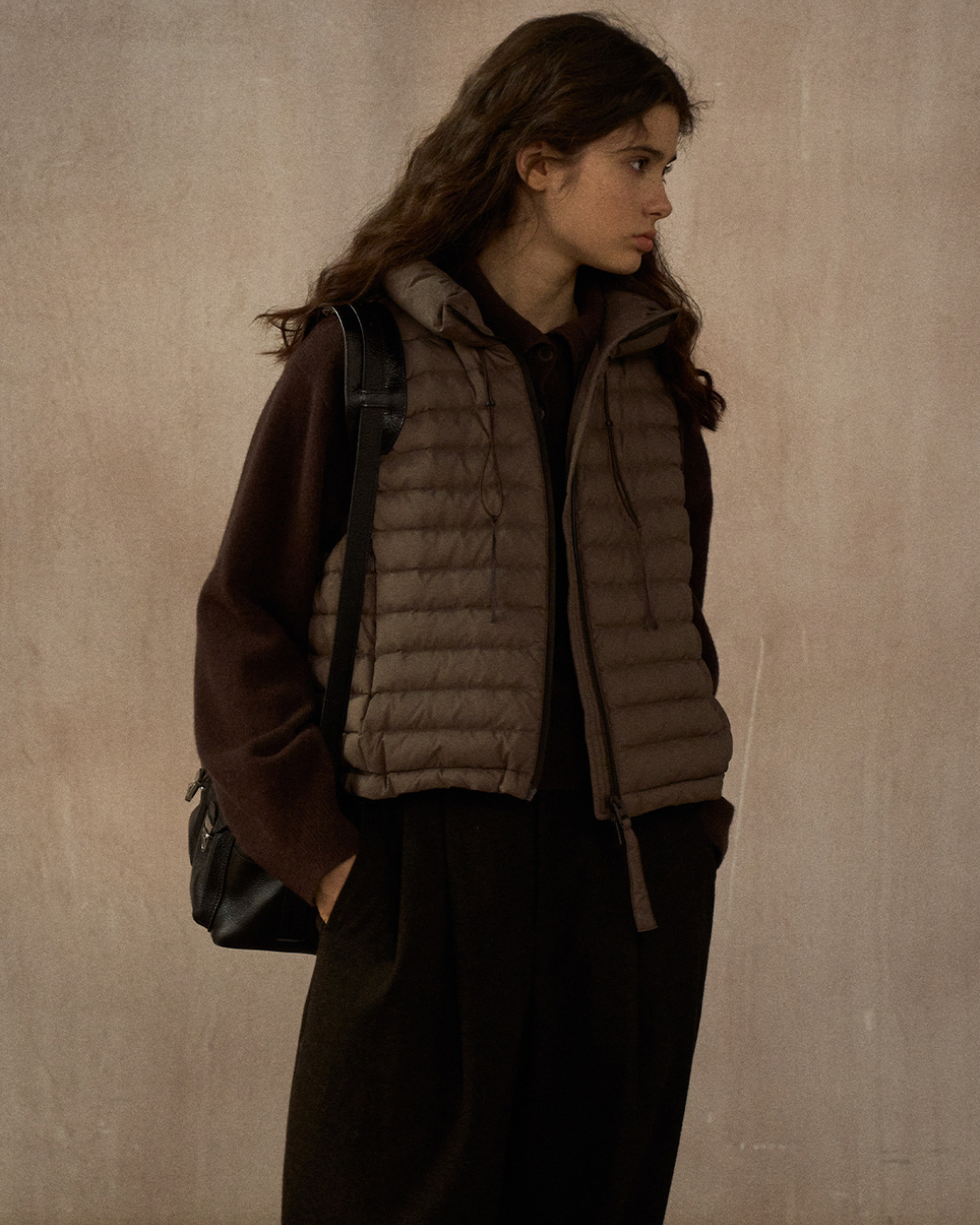 スタンドカラードローコードショートベスト 10250