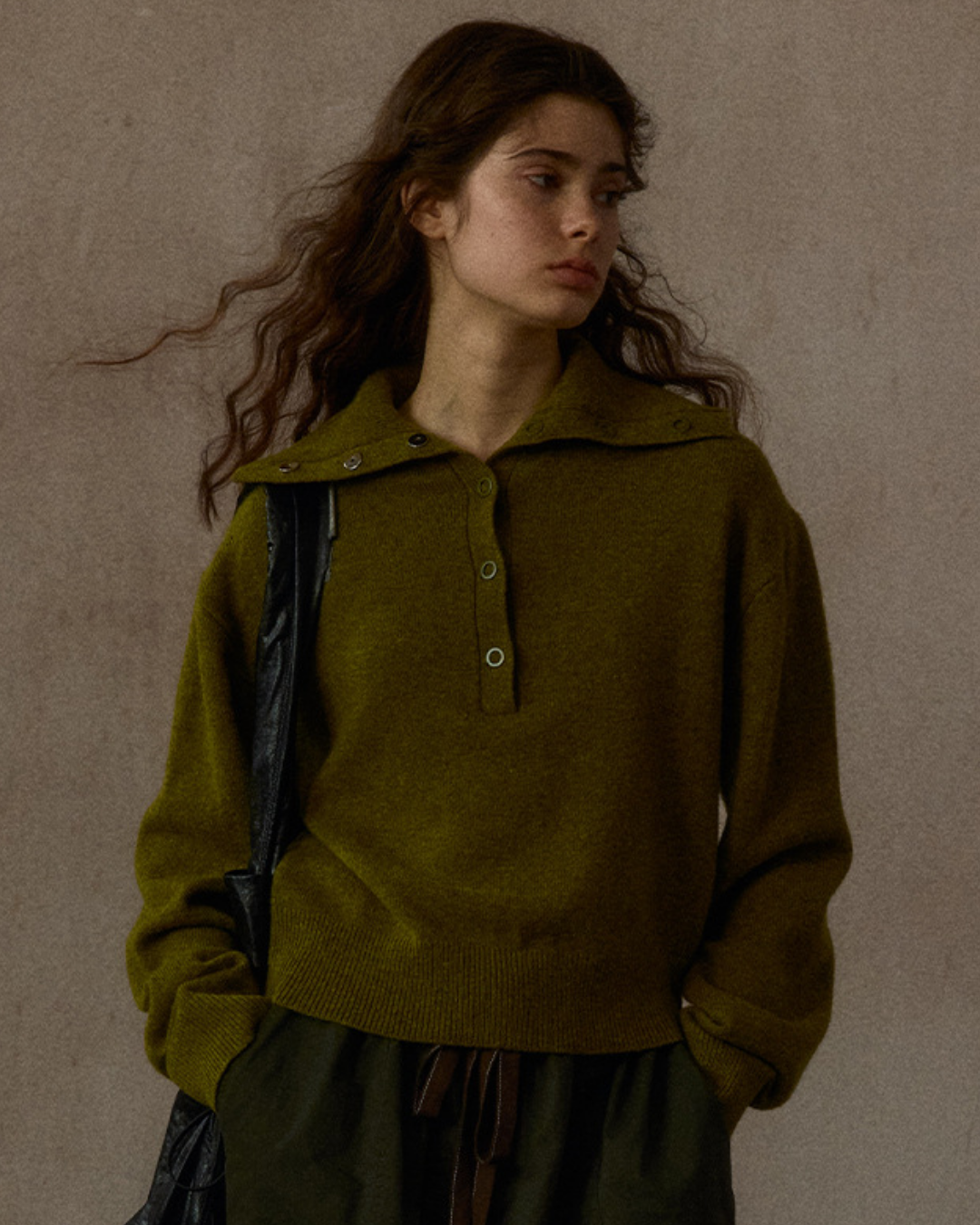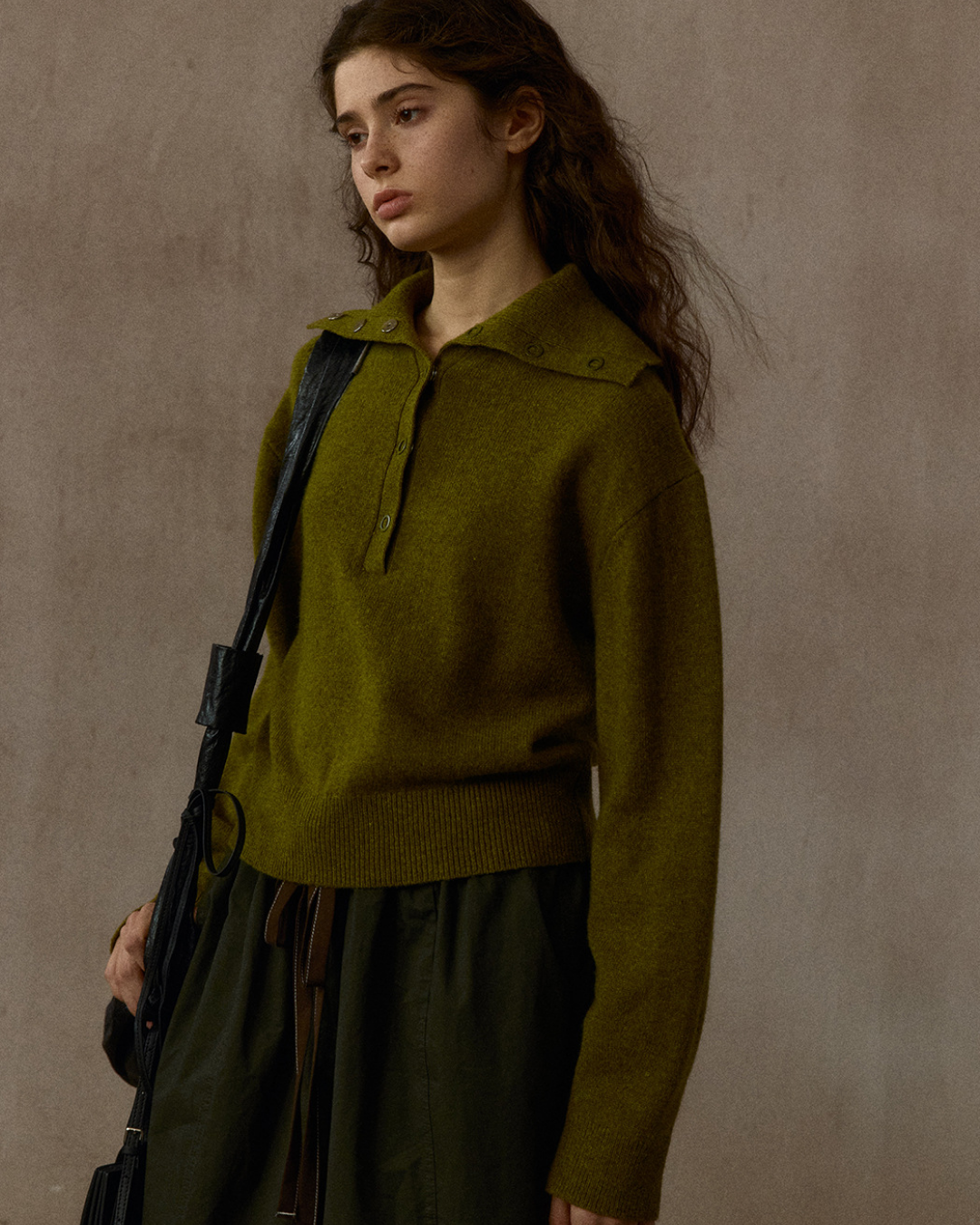 ハーフボタンリブニットフォレストトーンプルオーバー 10324