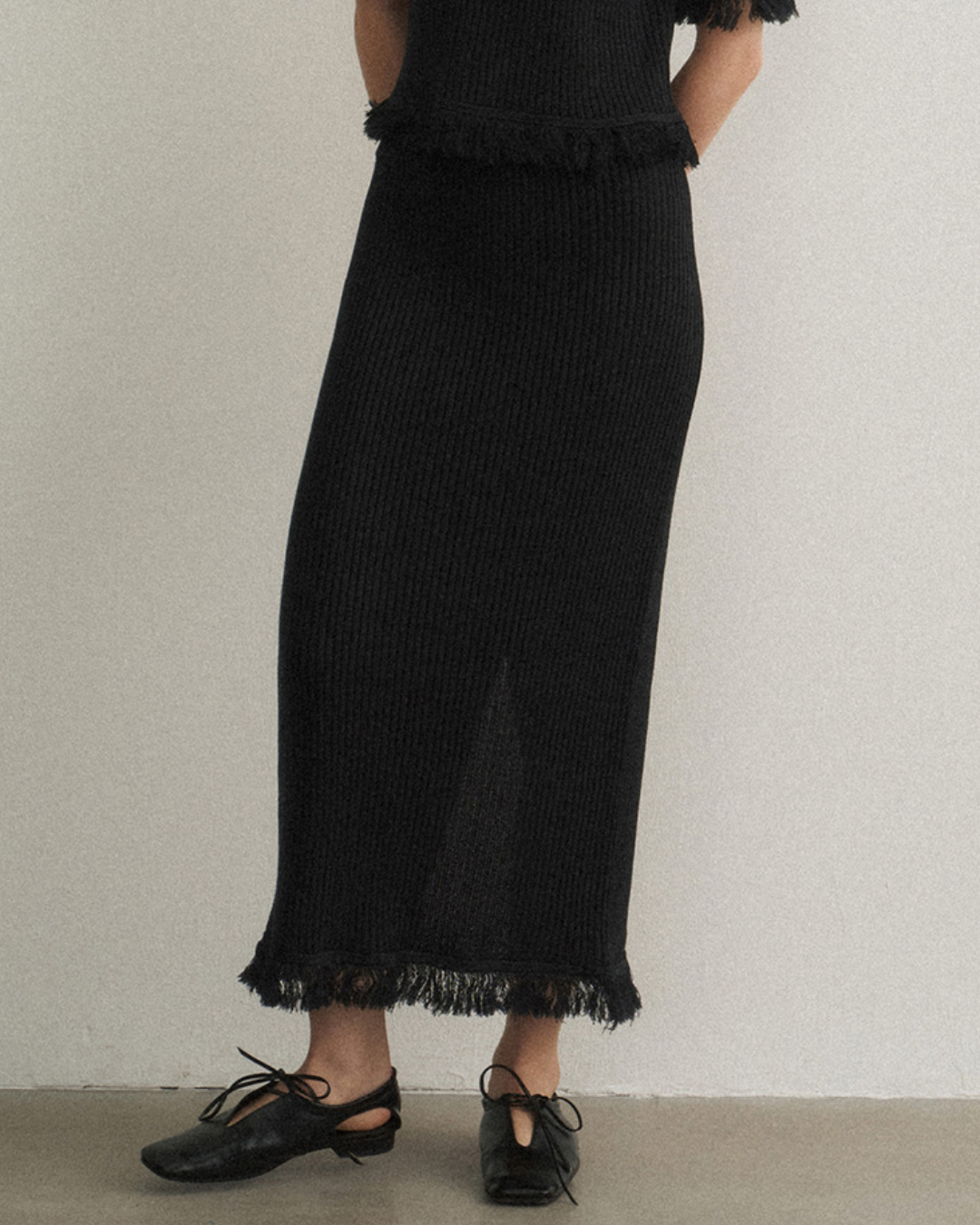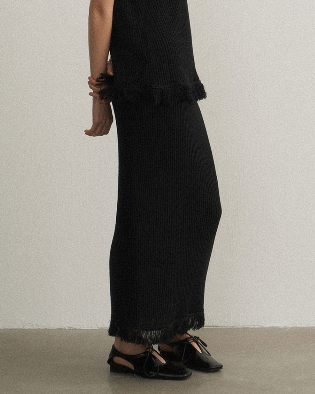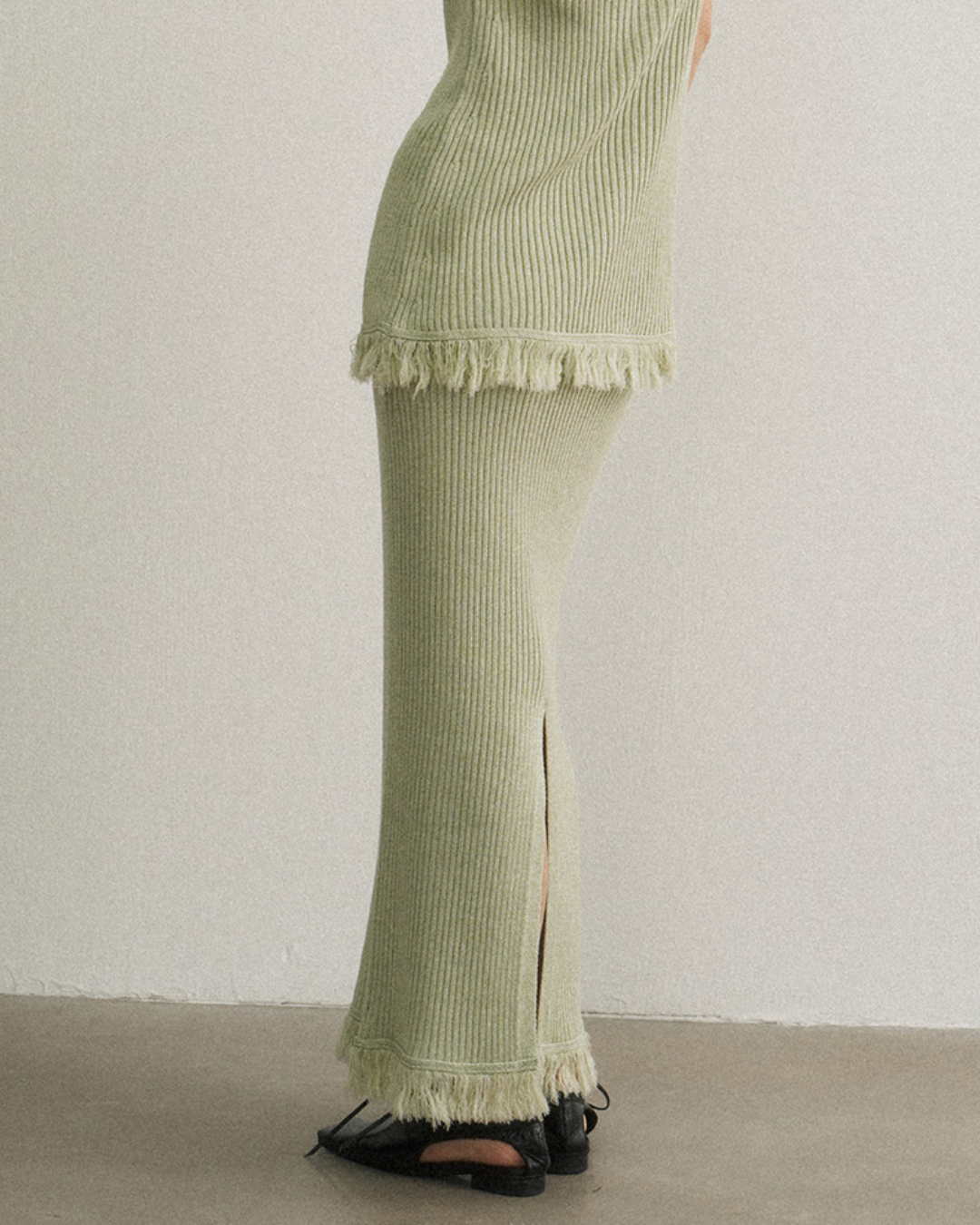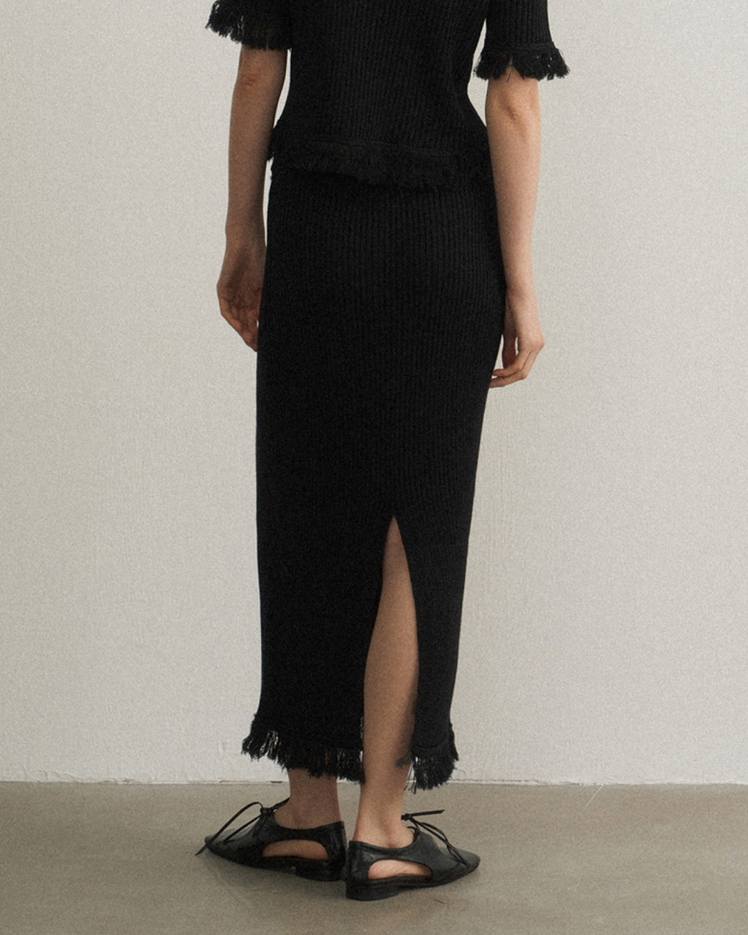 バックスリットフリンジニットスカート 10475
