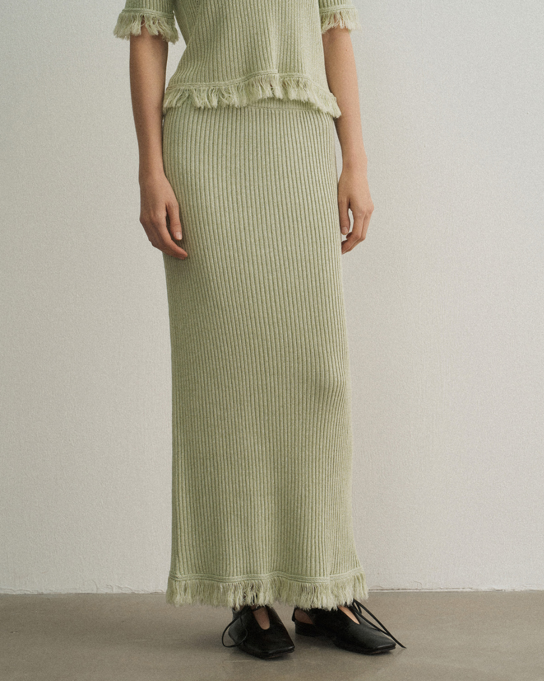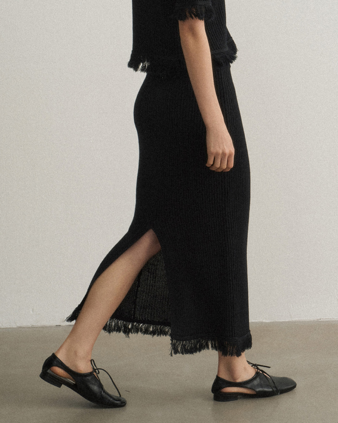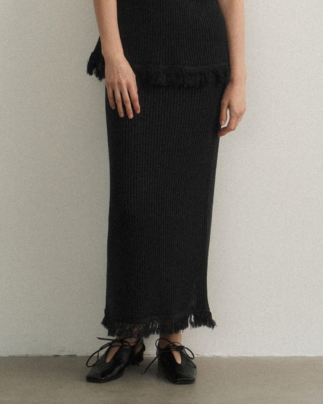 バックスリットフリンジニットスカート 10475