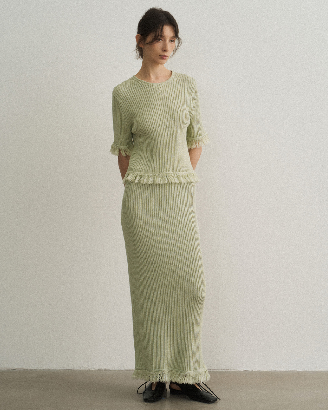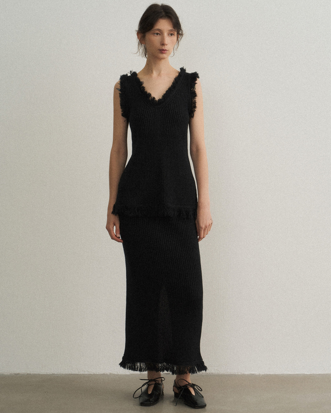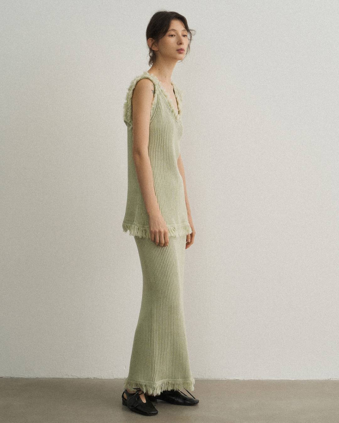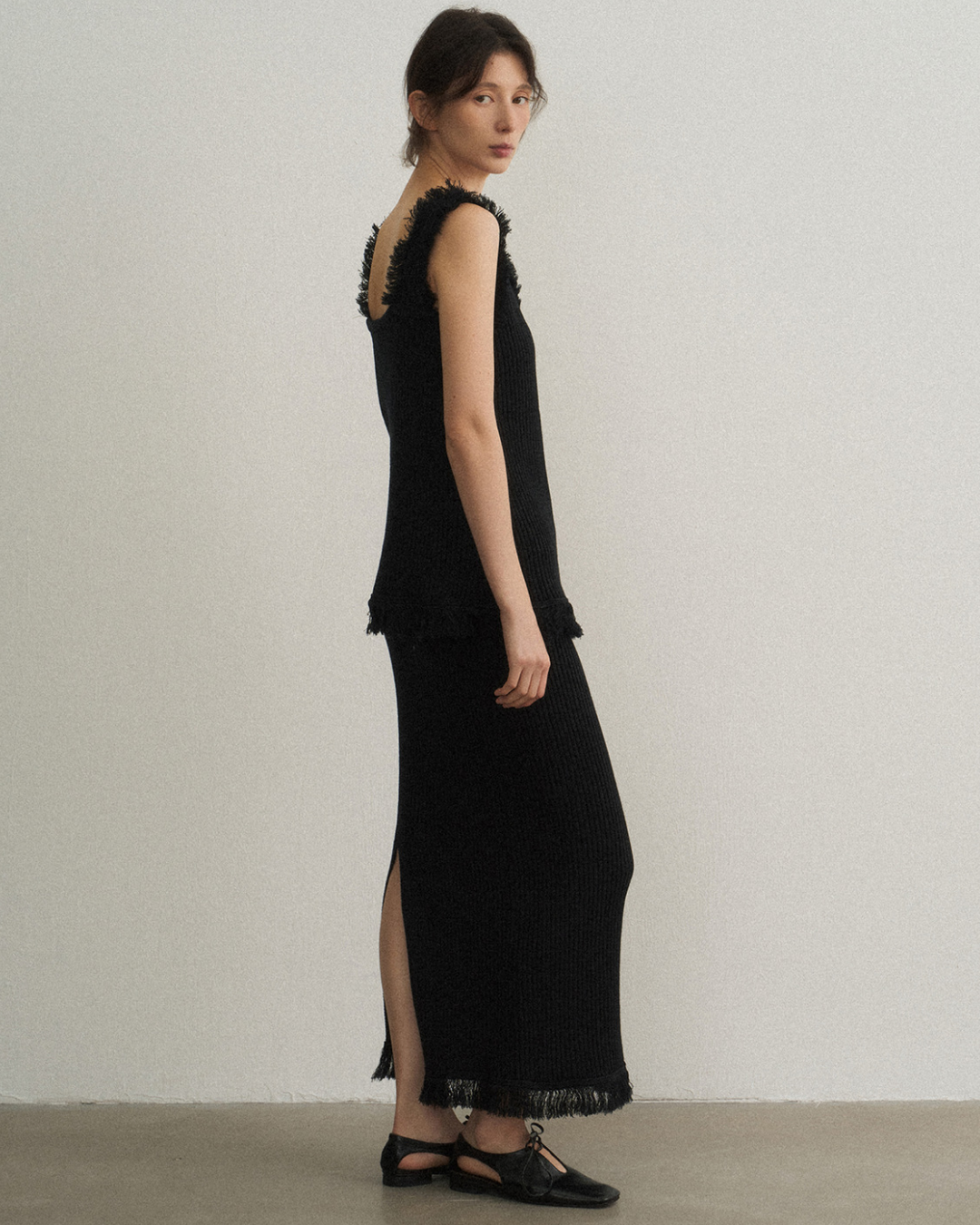 バックスリットフリンジニットスカート 10475